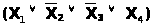 2. Произвести минимизацию СДНФ функции L, конституентами единицы которой являются все элементы множества A. При выполнении склеивания двух конституент единицы каждой вновь образуемой элементарной конъюнкции присвоить признак, состоящий из номеров функций, общих для двух склеиваемых конституент единицы. Последнее справедливо и для двух склеиваемых элементарных конъюнкций с признаками. Если признаки склеиваемых конституент единицы не содержат общих номеров, то склеивание не производится. Поглощение производится только для элементарных конъюнкций с одинаковыми признаками. Полученные в результате склеивания и поглощения конъюнкции называются простыми импликантами системы функций.