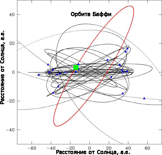 Обнаруженный в 2004 году 2004 DW, известный как Орк, или Оркус (Orcus) оказался и того больше – 1520 км в диаметре. Радиус его орбиты около 45 а.е.