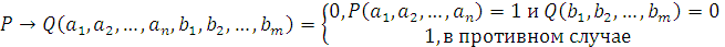 n-местным предикатом P (x1, x2,…, xn) называется функция P: M>1>ЧM>2>Ч…ЧM>n> → {1,0}, определенная на наборах длины n элементов некоторого множества M= M>1>ЧM>2>Ч…ЧM>n> и принимающая значения в области {1,0}. Множество М называется предметной областью предиката, его элементы – предметными константами.