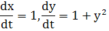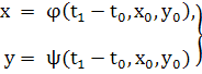 Рассмотрим обычную для системы двух дифференциальных уравнений с двумя неизвестными функциями геометрическую интерпретацию, т. е. геометрическую интерпретацию в трехмерном пространстве с декартовыми координатами х, у, t.