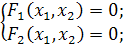 Которая в нашем случае представляет собой систему из двух нелинейных уравнений с двумя неизвестными вида: