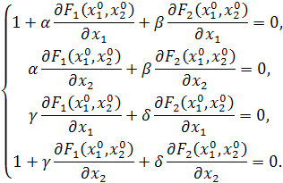 В матрице содержатся частные производные функций F>1> и F>2 >по x>1> и x>2.>