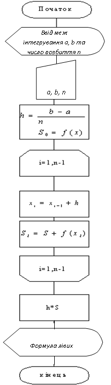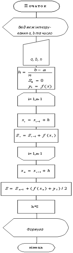 Обчислення визначених інтегралів за формулами прямокутників, трапецій та Сімпсона