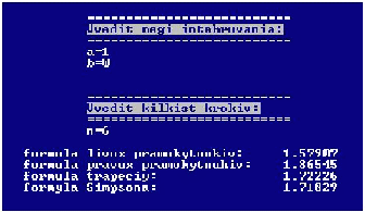 return printf("\n\tФормула Сімпсона:\t\t %g",fabs(h)*(s+s1)/3)