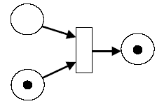Графічна модель системи у вигляді мережі Петрі є орієнтованим графом із двома типами вершин, з'єднаних між собою спрямованими дугами. Позиція графічно позначається кружком або еліпсом, а перехід – бар'єром або прямокутником (рис.1), дуги можуть з'єднувати вершини тільки різних типів: позицію з переходом або перехід із позицією.