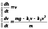 Математическая модель при падении тела в гравитационном поле с учетом сопротивления воздуха выражается системой из двух дифференциальных уравнений первого порядка.