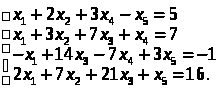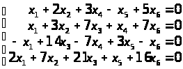 х1 = 14х3 – 7х4 + 3х5 – х6, х2 = –7х3 + 2х4 – х5 – 2х6 і змінні х3, х4, х5, х6 – будь-які. Це і є розв’язок системи.