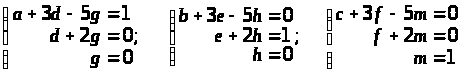Звідси х1 = 14х3 – 7х4 – 3х5, х2 = – 7х3 + 2х4 – х5, де х3, х4, х5 – будь-які. Даючи вільним змінним х3, х4, х5 значення: а) 1, 0, 0; б) 0,1,0; в) 0, 0, 1; одержимо, відповідно, базисні вектори простору L розв’язків однорідної системи рівнянь: е1 = (14, –7, 1, 0, 0), е2 = (–7, 2, 0, 1, 0), е3 = (–3, –1, 0, 0, 1).