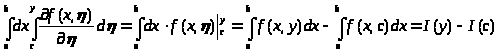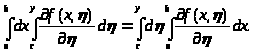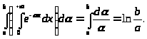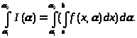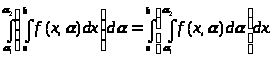 Выражение, стоящее справа, есть двукратный интеграл от функции f(x,α) по прямоугольнику, расположенному в плоскости Oxα. Можно изменить порядок интегрирования в этом интеграле: