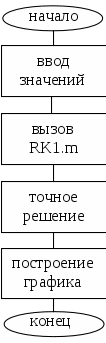 Далее программа вызывает RK1.m, где происходит решение системы методом Эйлера, следуя алгоритму: