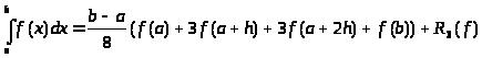 Якщо в формулі Ньютона-Котеса взяти n = 3, тобто функцію f(x) замінити інтерполяційним багаточленом третього степеня, побудованим за значення функції f(x) у точках x0=a, x1=a+h, x2=a+2h, x3=b, h=(b-a )/3. то одержимо таку квадратурну формулу: