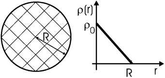 Задача. Шар радиуса R заряжен как ρ(r) = ρ0(1–r/R). Найти полный заряд шара Q, поле Er(r), а также потенциал φ(r) при r = 0... +∞.