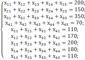 З вантажів х>ij> що стоять в мінусових клітинах, вибираємо найменше, тобто у = min (А>1>B>1>) =70. Додаємо 70 до обсягів вантажів, що стоять в плюсових клітинах і віднімаємо 70 з Х>ij>, що стоять в мінусових клітинах.