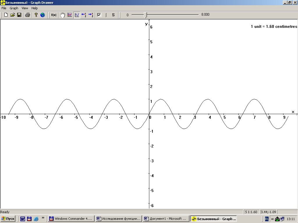 Для построения графика периодической функции с периодом Т достаточно провести построение на отрезке длиной Т и затем полученный график параллельно перенести на расстояния nT вправо и влево вдоль оси Ох.
