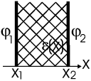 Это типичная ситуация в конденсаторе. Для ее рассмотрения используется уравнение Пуассона с ρ = 0, которое интегрируется с учетом условий φ(x1) = φ1, φ(x2) = φ2 (для плоскостного случая) или φ(r1) = φ1, φ(r2) = φ2 (сфера, цилиндр). Рассмотрим далее случай плоскости.