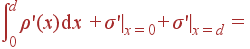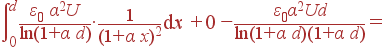 Как и следовало ожидать, σ '|x = 0 = 0, поскольку у обкладки x = 0 диэлектрическая проницаемость равнa единице. Если U>0, то σ '|x = d<0, что тоже естественно: у обкладки x = d должен концентрироваться отрицательный связанный заряд. Для проверки найдем суммарный связанный заряд на единицу площали обкладки конденсатора - этот заряд должен оказаться равным нулю. Действительно,