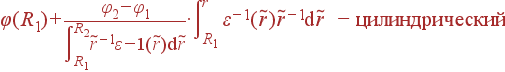Задача. Получить выражения для φ(r), Er(r), ρ ', σ ' в случае цилиндрической и сферической симметрии, если заданы зависимость ε(r), а также потенциалы граничных поверхностей φ(R1(2)) = φ1(2). ρ = 0.