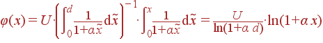 Решение: Будем считать, что конденсатор занимает область координат x = 0... d, причем потенциал одной обкладки (x = 0) равен φ1 = 0, а другой φ2 = U. Тогда зависимость потенциала от координаты находится как