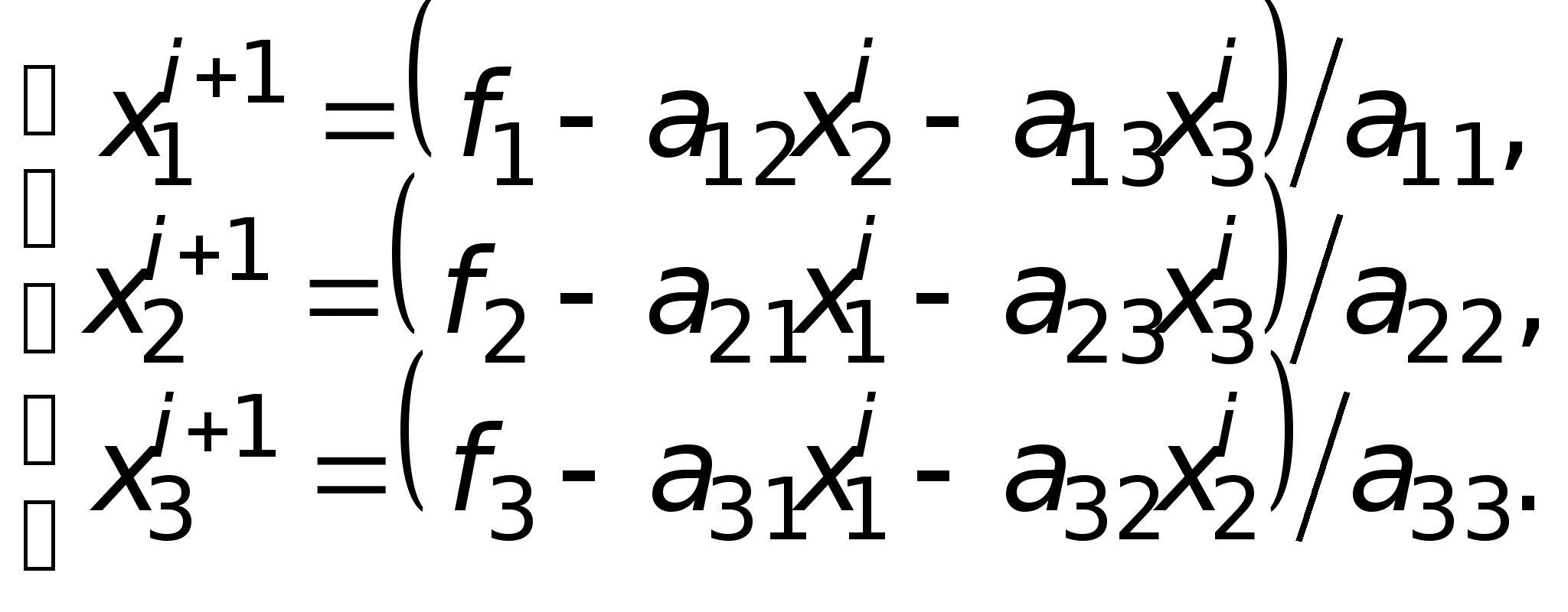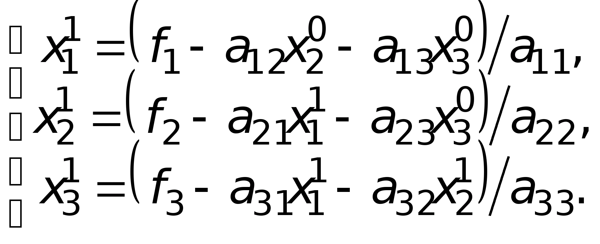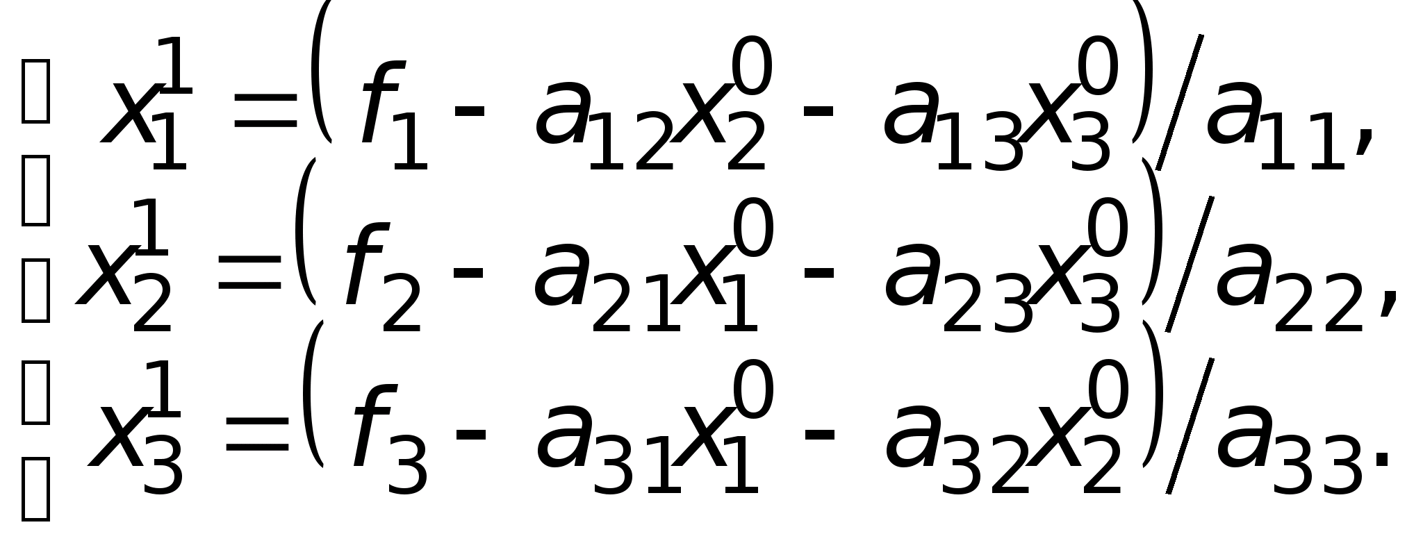 Продемонстрируем применение одношагового итерационного метода Якоби на решении системы трех уравнений. Пусть система (1.1) имеет вид