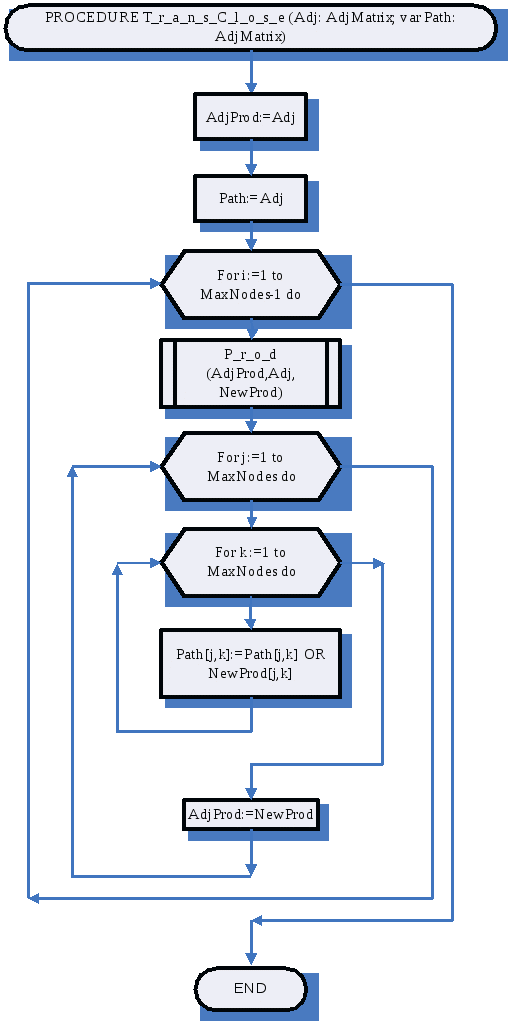 PROCEDURE T_r_a_n_s_C_l_o_s_e (Adj: AdjMatrix; var Path: AdjMatrix);