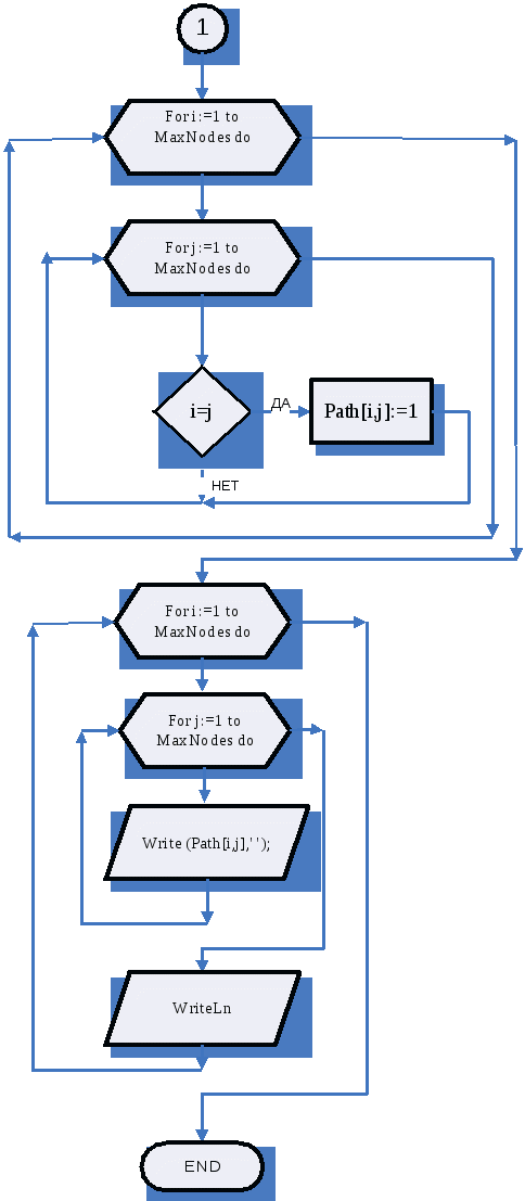 For i:=1 to MaxNodes do begin For j:=1 to MaxNodes do if i=j then Path[i,j]:=1; end;