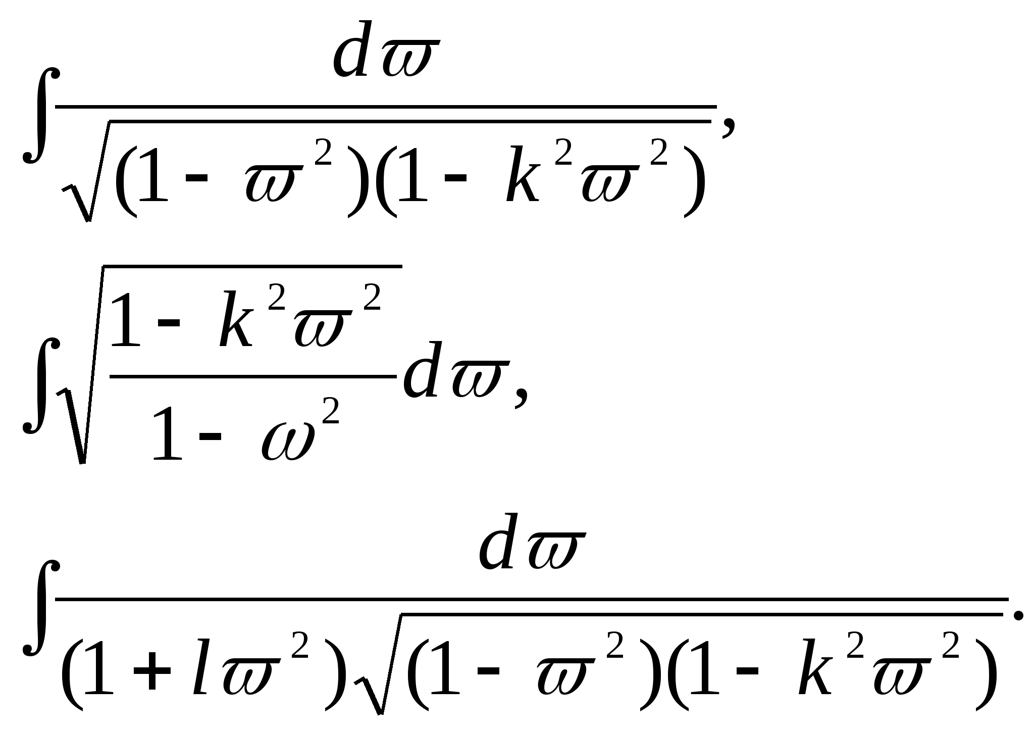 где k и l – постоянные. Интегралы (14) называют эллиптическими интегралами в форме Лежандра, соответственно, первого, второго и третьего рода. Число k называют модулем интеграла.