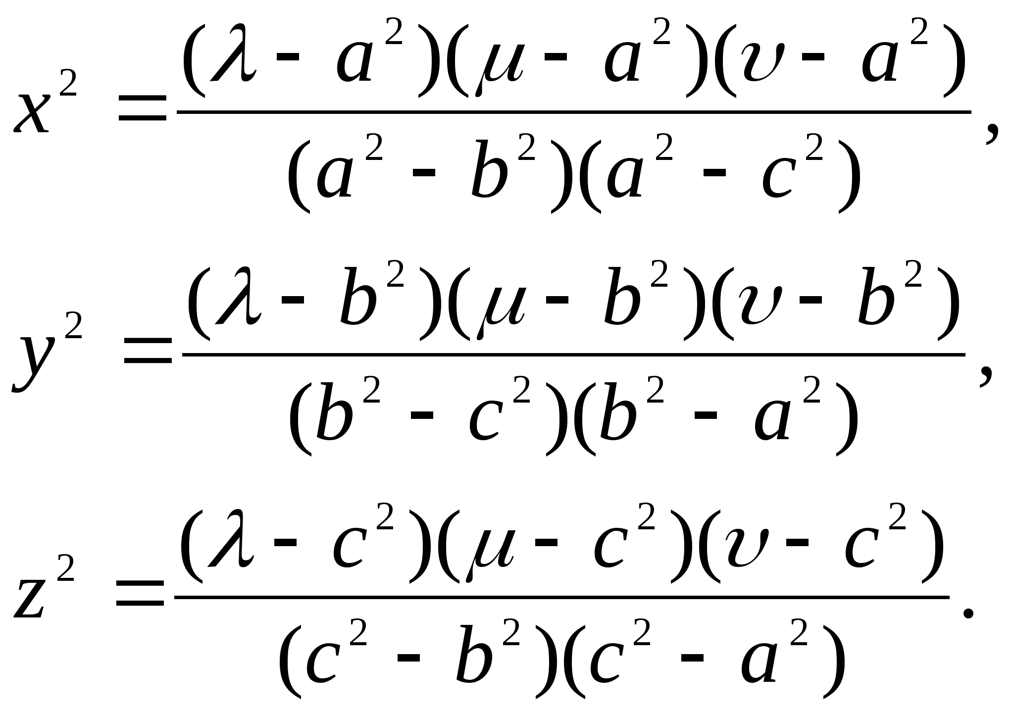 представляют собой, соответственно, софокусный эллипсоид, однополосный и двуполосный гиперболоиды, т.е. взаимно ортогональные поверхности (рис. 2).