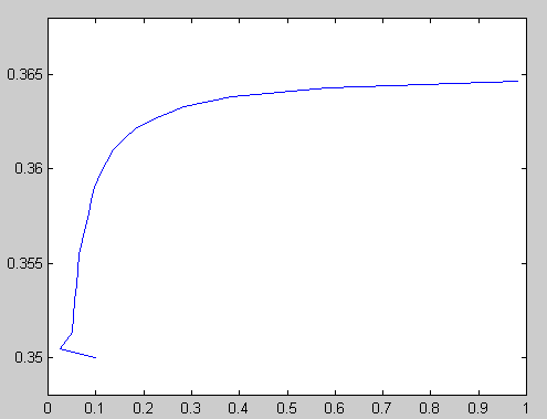 Начальное приближение x0=0.35, заданная точность edop=0.1, dt=0.1