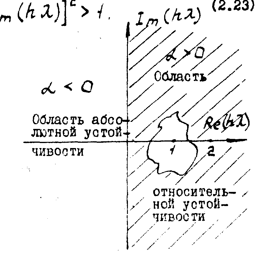 С учетом того, что мы рассматриваем ситуацию, когда Re(h)<0, область абсолютной устойчивости, как следует из неравенства [1-Re(h)]2 + Im((h)]2>1 - вся левая полуплоскость.