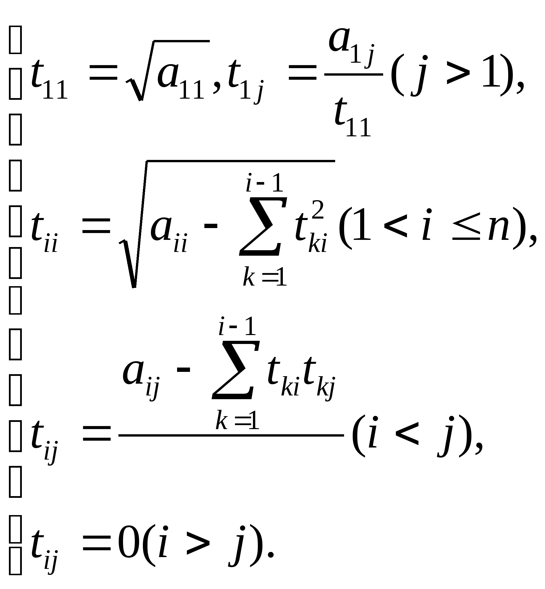 Перемножая матрицы T и T и приравнивая матрице A, получим следующие формулы для определения t>ij>: