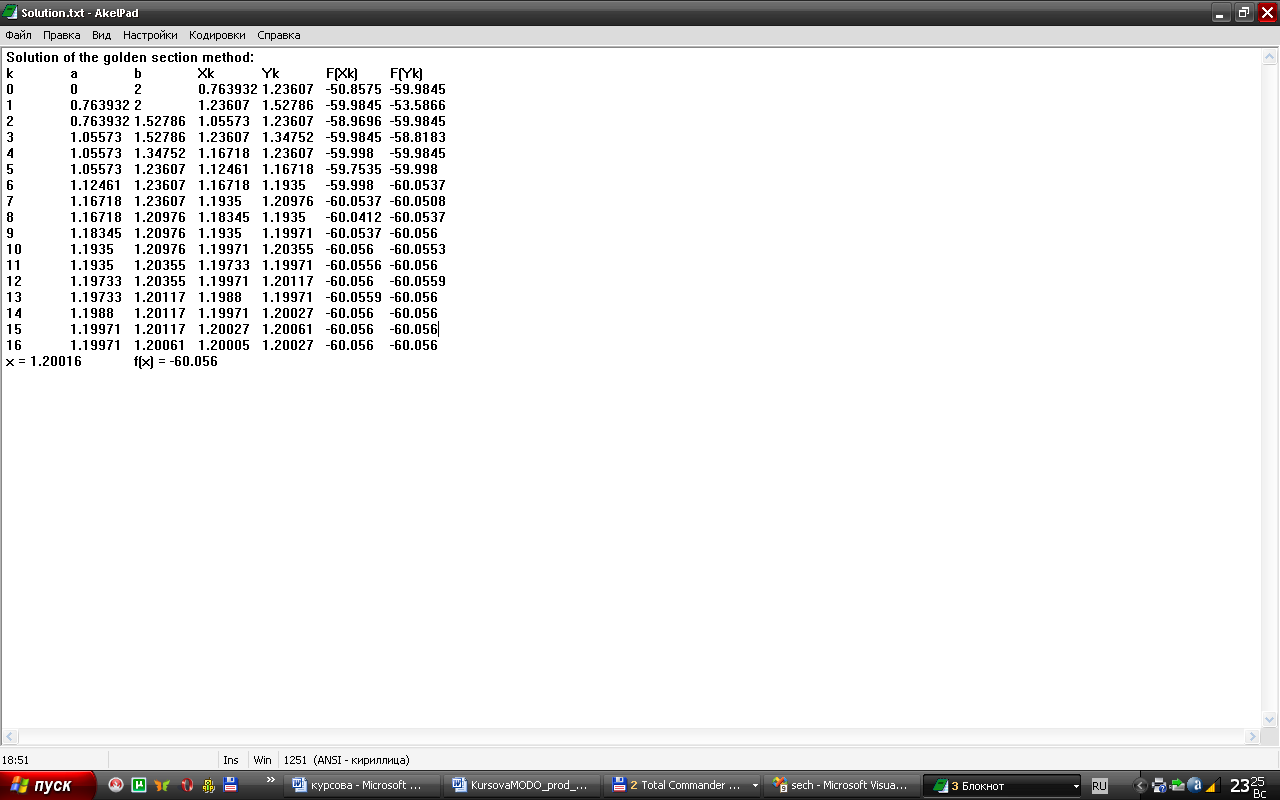 Розглянемо детально методи розв’язування одновимірних задач, а саме: метод дихотомії, метод золотого перерізу і метод Фібоніччі.