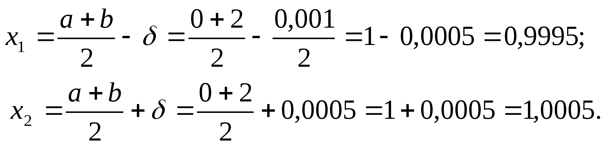 x = (b+a)/2;