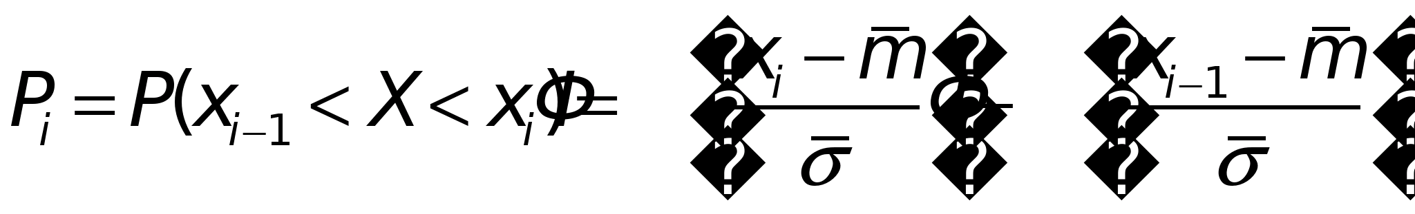 K = 6, т.к. произошло объединение трёх первых и трёх последних интервалов в один, так как частота mi каждого интервала должна быть не меньше 5 - 8.