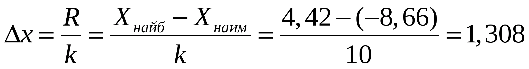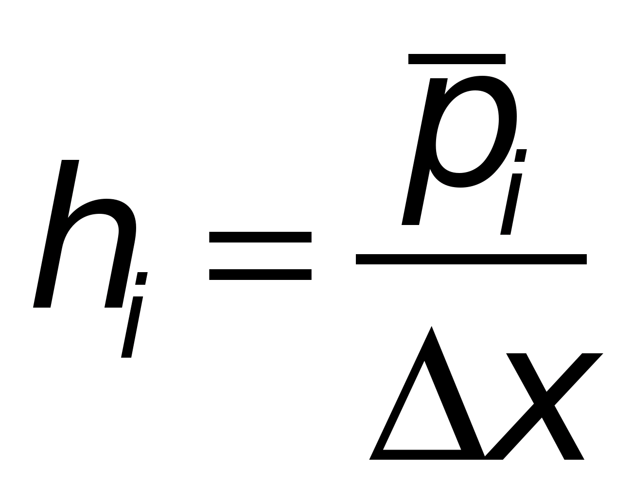 Замечание: частота mi каждого интервала должна быть не меньше 5 - 8, т.е. в этот интервал должно попадать не меньше 5 - 8 значений случайной величины. Если это не выполняется, то малочисленные интервалы следует объединить в один интервал или присоединить к соседнему, суммируя частоты.