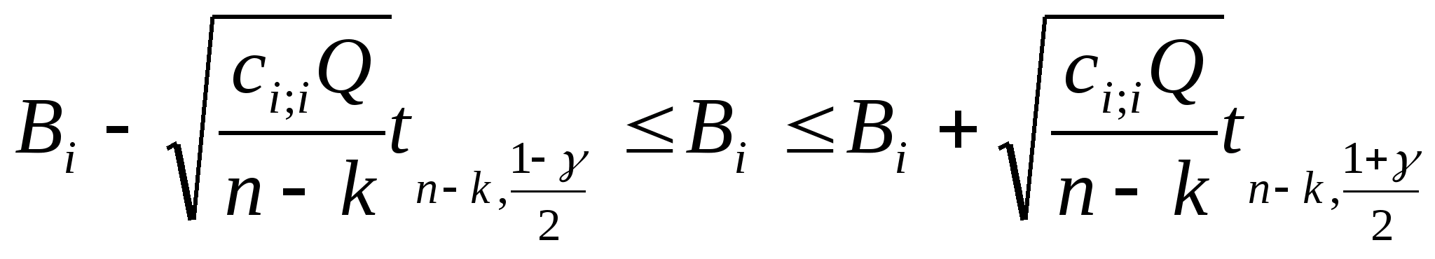 В случае нормальных ошибок доверительные интервалы находятся из двойного неравенства: