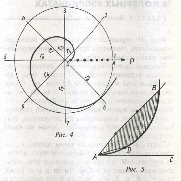 В заключение заметим, что полярные координаты широко применяются при определении длин кривых, площадей фигур, объемов и площадей поверхностей тел вращения, а также в задачах на определение центра масс и момента инерции тела. Кривые, рассмотренные в статье, нередко возникают при решении различных задач в электротехнике, акустике, гидростатике и механике.
