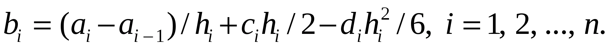 d>i> = (c>i> – c>i>> >>–>> >>1>) / h>i>, i = 1, 2, …