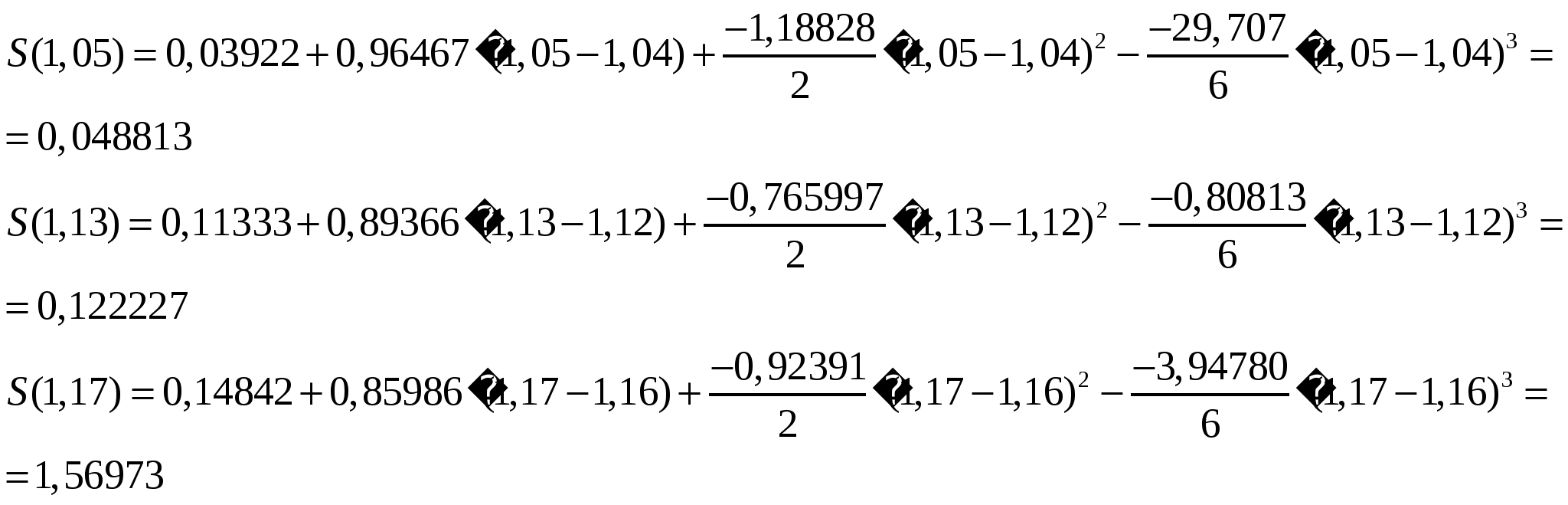 S(x*) = S>k>(x*) = a>k> + b>k>(x* – x>k>) + (c>k> / 2)(x* – x>k>)2 + (d>k> / 6)(x* – x>k>)3.
