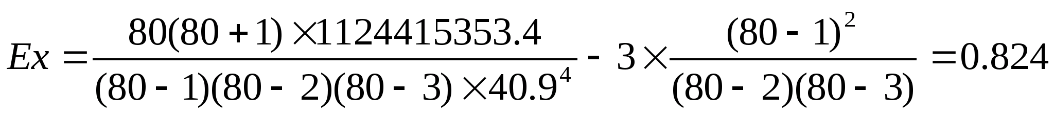 Эксцесс характеризует «крутизну» распределения и определяется как отношение четвертого центрального момента к стандартному отклонению в четвертой степени. Для нормального распределения величина эксцесса равна трем, поэтому от рассчитанного значения отнимают 3. Значение эксцесса для анализируемого распределения равно 1,075 (рассчитанное вручную по группировочной таблице – 0,824). Это означает, что исследуемое распределение гораздо «круче» нормального.