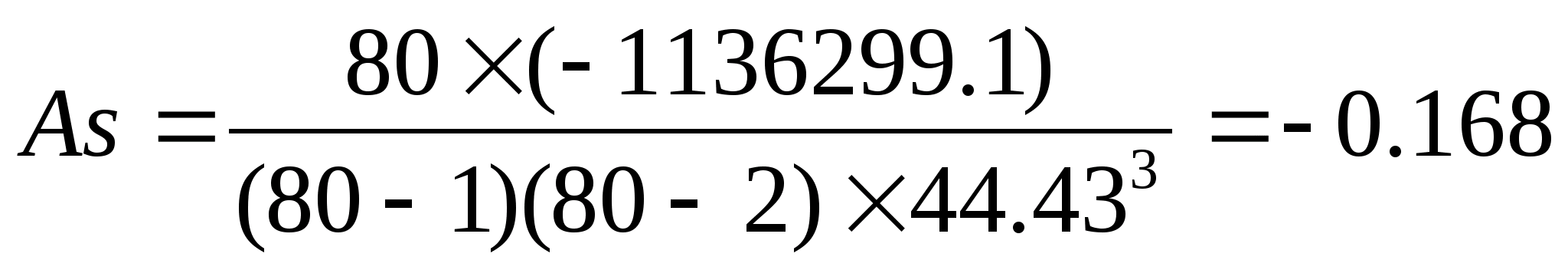 Форма распределения характеризуется асимметрией и эксцессом. Коэффициент асимметрии показывает, как следует из названия, степень асимметричности распределения и определяется как отношение третьего центрального момента к стандартному отклонению в кубе. Коэффициент асимметрии исследуемого распределения равен -0,341 (по сгруппированным данным – -0,168), что свидетельствует о небольшой левосторонней асимметрии.