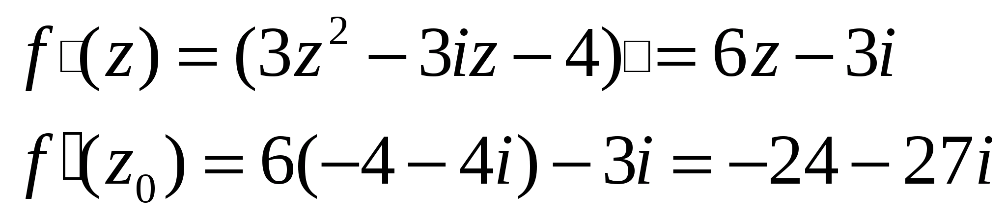 Так как для аналитических функций справедливы все формулы и правила дифференцирования действительного аргумента, то