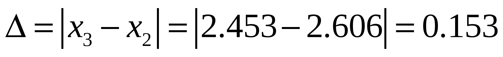 Уточнить значение корня на заданном интервале тремя итерациями и найти погрешность вычисления.