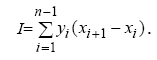 Площадь трапеции равняется полусумме оснований, умноженной на высоту, которая равна расстоянию между точками по оси х. интеграл равен сумме площадей всех трапеций.