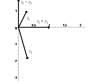 Задача 1. Вычислить сумму и разность комплексных чисел, заданных в показательной форме. Переведя их в алгебраическую форму. Построить операнды и результаты на комплексной плоскости.