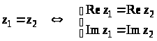 Одно комплексное равенство равносильно системе двух действительных равенств. Эти действительные равенства получаются из комплексного равенства разделением действительных и мнимых частей.