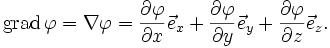 где ФF — поток векторного поля F через сферическую поверхность площадью S, ограничивающую объём V. Ещё более общим, а потому удобным в применении, является определение, когда форма области с поверхностью S и объёмом V допускается любой. Единственным требованием является её нахождение внутри сферы радиусом, стремящимся к нулю. Это определение, в отличие от приводимого ниже, не привязано к определённым координатам, например, к декартовым, что может представлять дополнительное удобство в определённых случаях. (Например, если выбирать окрестность в форме куба или параллелепипеда, легко получаются формулы для декартовых координат, приведённые в следующем параграфе).