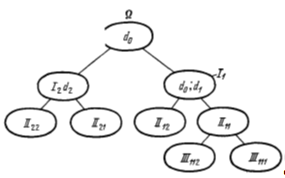 Итак, первый шаг метода ветвей и границ состоит в проведении стандартной операции над исходным множеством Ω. На следующем шаге мы продолжаем развивать дерево возможных вариантов. Сначала мы сравниваем две оценки d>1 >и d>2> и для последующего анализа выбираем то из множеств I>1> или I>2>, для которого соответствующая оценка меньше.