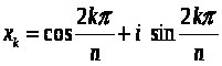 Изобразив числа, заданные формулой (1), на комплексной плоскости, мы увидим, что они расположены в вершинах правильного n-угольника, вписанного в окружность единичного радиуса, одна из которых расположена в точке с координатами (1, 0). В частности, числа, заданные формулой (1), попарно различны.