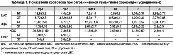 Особенности кровоснабжения отграниченных гемангиом хориоидеи
