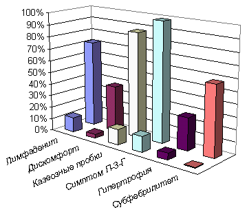 2. Пациенты прошедшие, как правило, два курса и достигших значительного улучшения, однако имеющие некоторые проявления рецидивов тонзиллита: казеозные пробки, дискомфорт в области глотки, сезонные боли в суставах. Эта группа составляет ~30% от общего числа пациентов, прошедших лечение